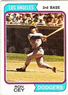 22. 1974 Topps Ron Cey: The first solo card of my favorite player ever. It's an epic photo, something that certainly drew us in as kids. I don't know if he was terribly successful there, though.
