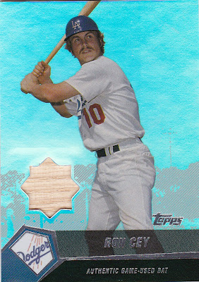 Any bat card, especially one from a player who is retired, makes me wonder if that is really wood from one of Cey's bats, or wood from a bat at all. The wood looks identical to the bar stool that is sitting directly to the left of me. I know the card reads "authentic," but I'm not convinced.
