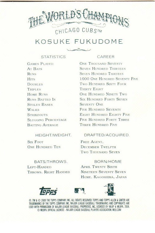 Now I have the Fukudome. And I wasn't even trying. (It's selling for between 6 bucks and 25 bucks on eBay at the moment).