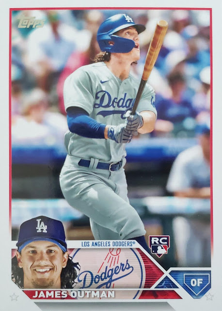 So, the 2023 team set has been complete for about a month now, and I'm just getting to this because, although I like the design of this year's set very much, the photos -- at least for the Dodgers -- are a bit mundane. Pitchers pitching and batters batting. This has been the default since like 1991. But I need a little more for a card to be crowned my favorite.